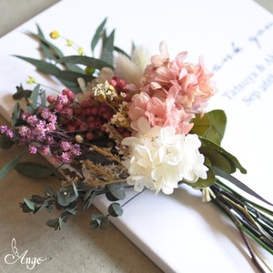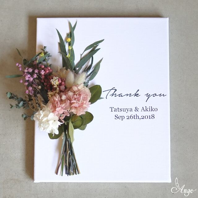 プリザーブドフラワーとドライフラワーのスワッグ付キャンバスボードです。